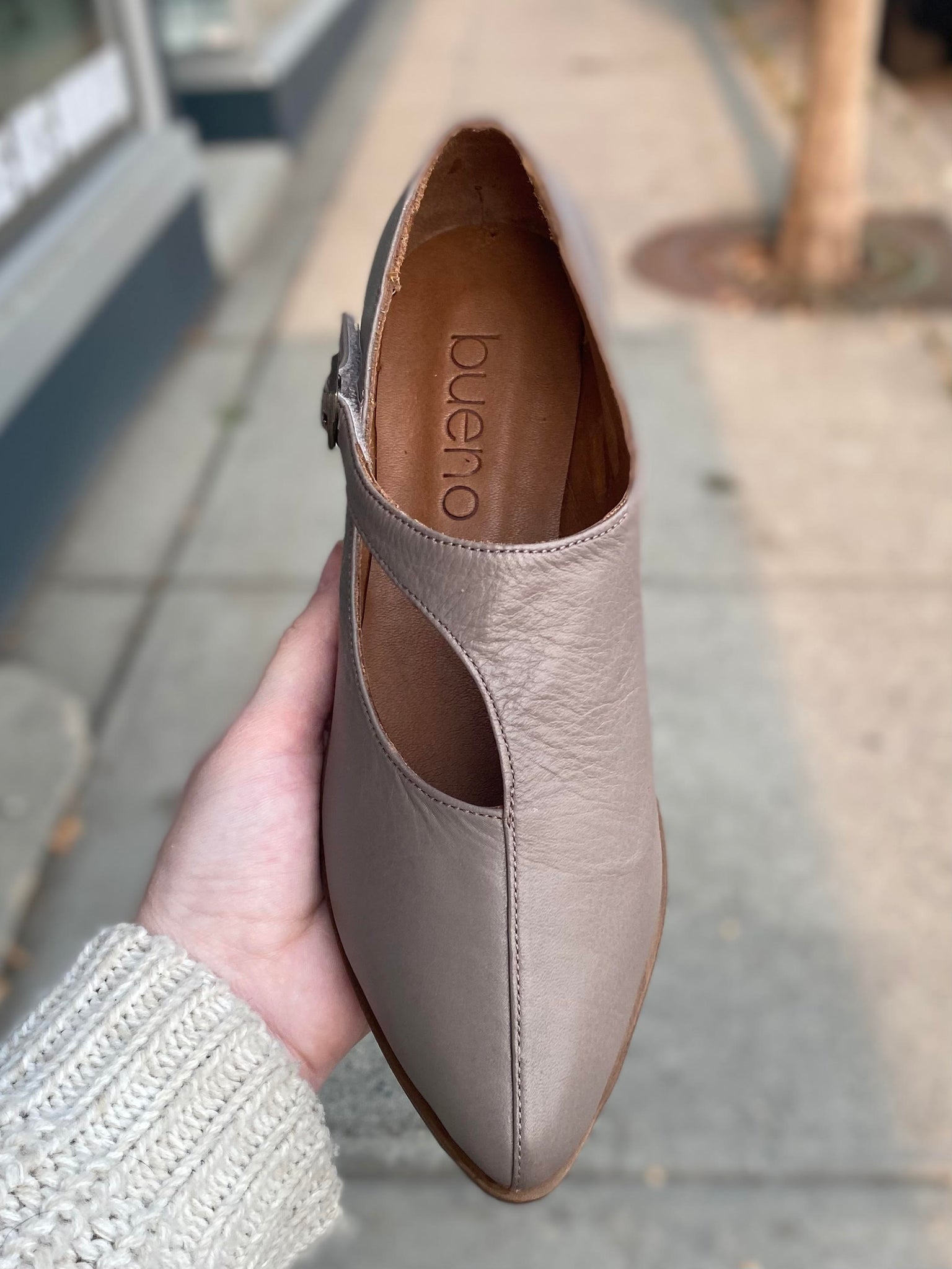 The Bev by Bueno is handmade in Turkey with a soft leather upper and lining, it has a padded leather insole and the strap looks like a buckle but it actually Velcro!
