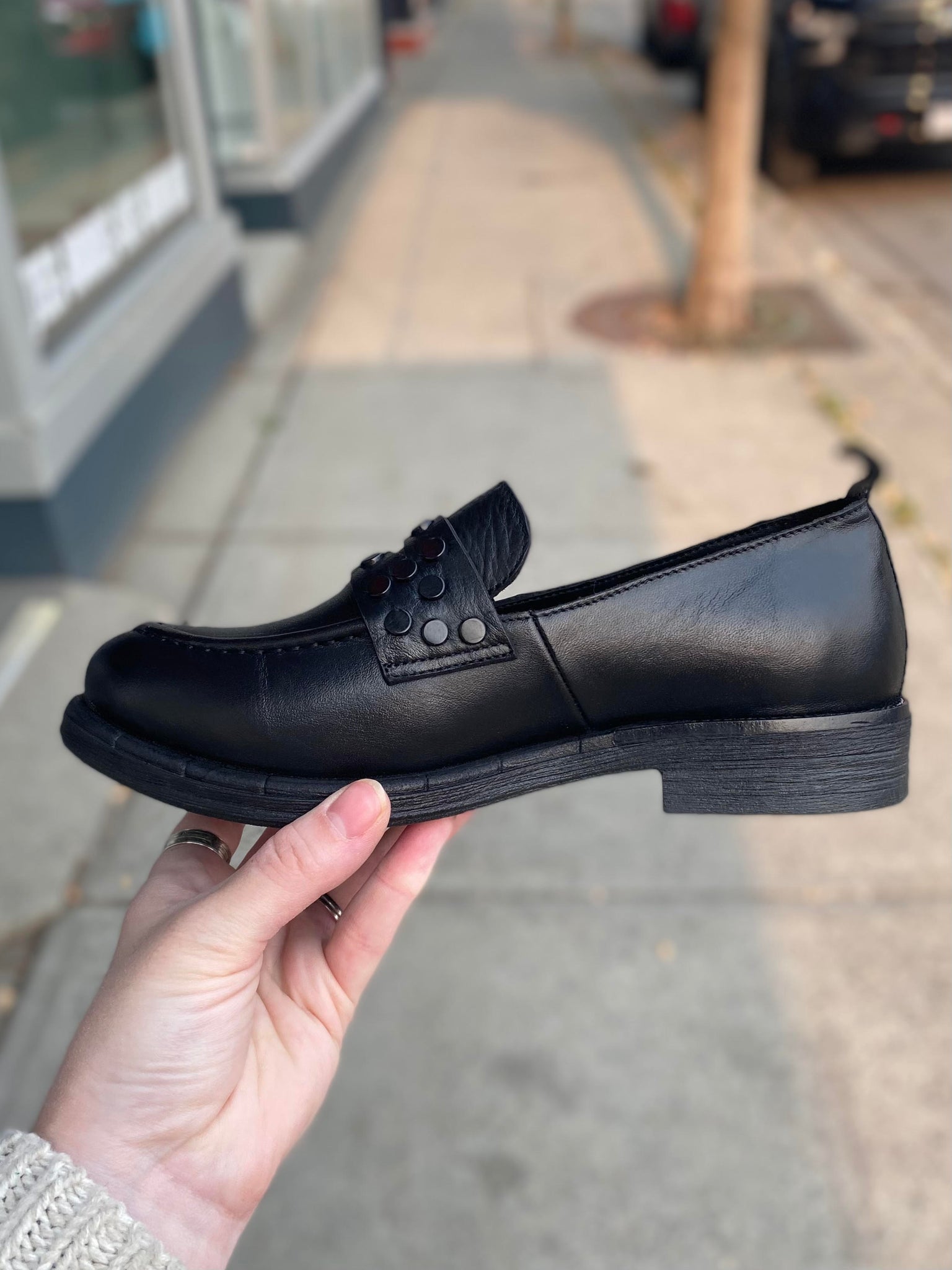 These Memphis loafers by Bueno are handmade in Turkey with a leather upper, it has a padded leather insole and have a 1" heel. We have found this shoe to fit large and recommend sizing down.